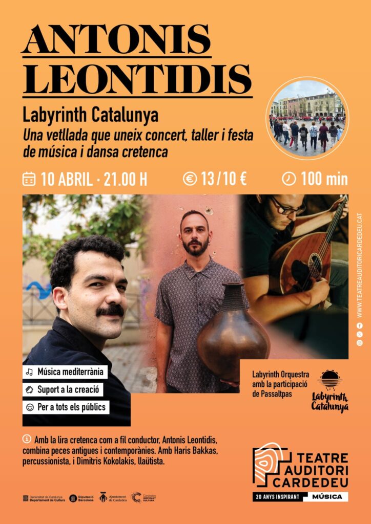 Leontidis offers a contemporary perspective on a deep and evolving tradition. The concert is presented within the framework of Labyrinth Catalunya and will include a short Cretan dance workshop led by the Passaltpas association before the performance.